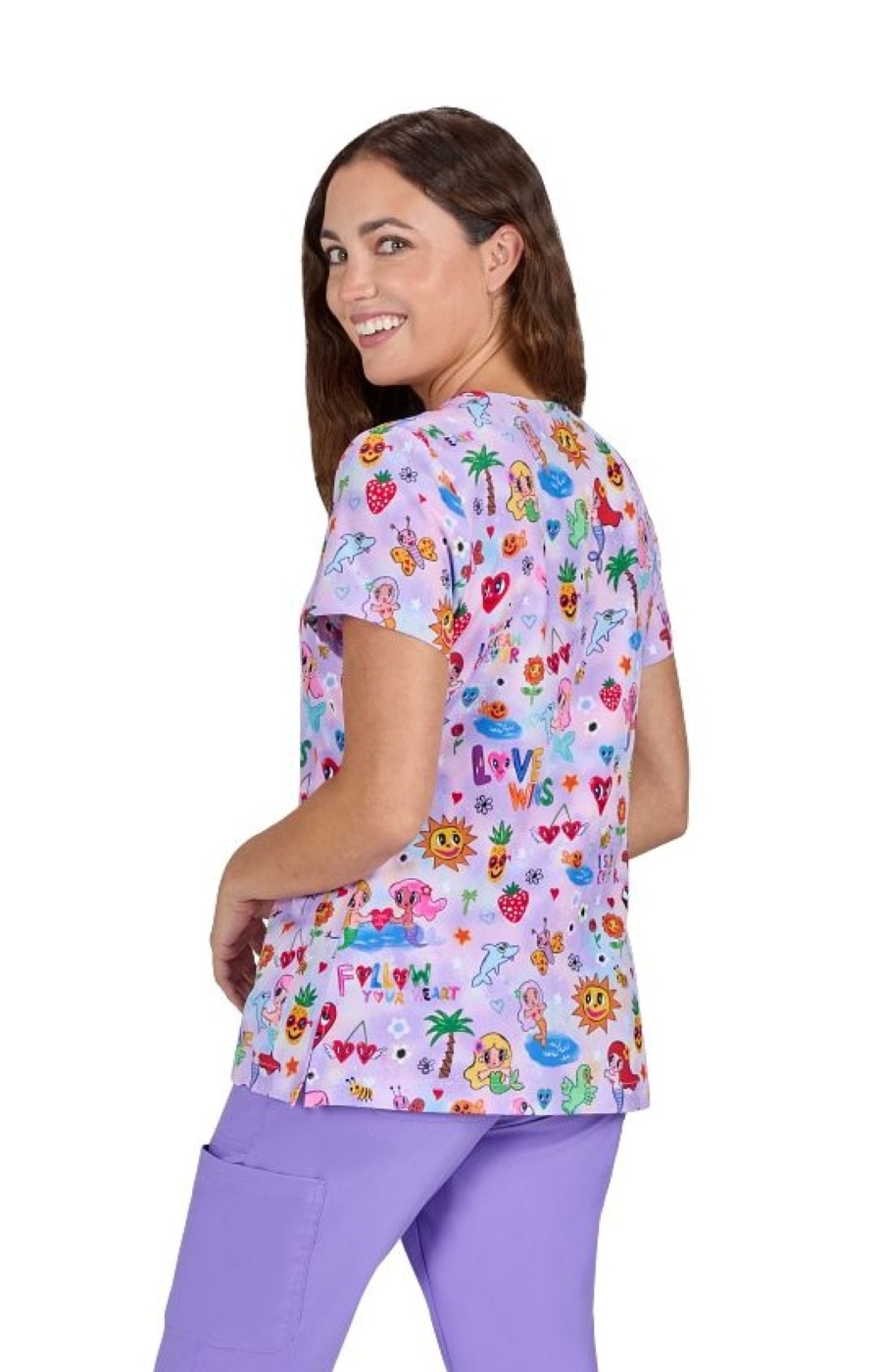 Mönstrad vårdtunika med stretch.